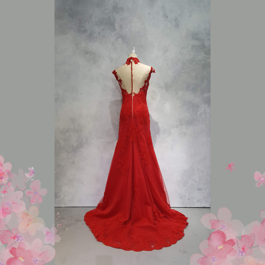 Evening Dress 73TYE01 Red Oriental Collar Trumpet  18 Oriental Cheong Sam Qi Pao rental Malaysia Kuala Lumpur Petaling Jaya