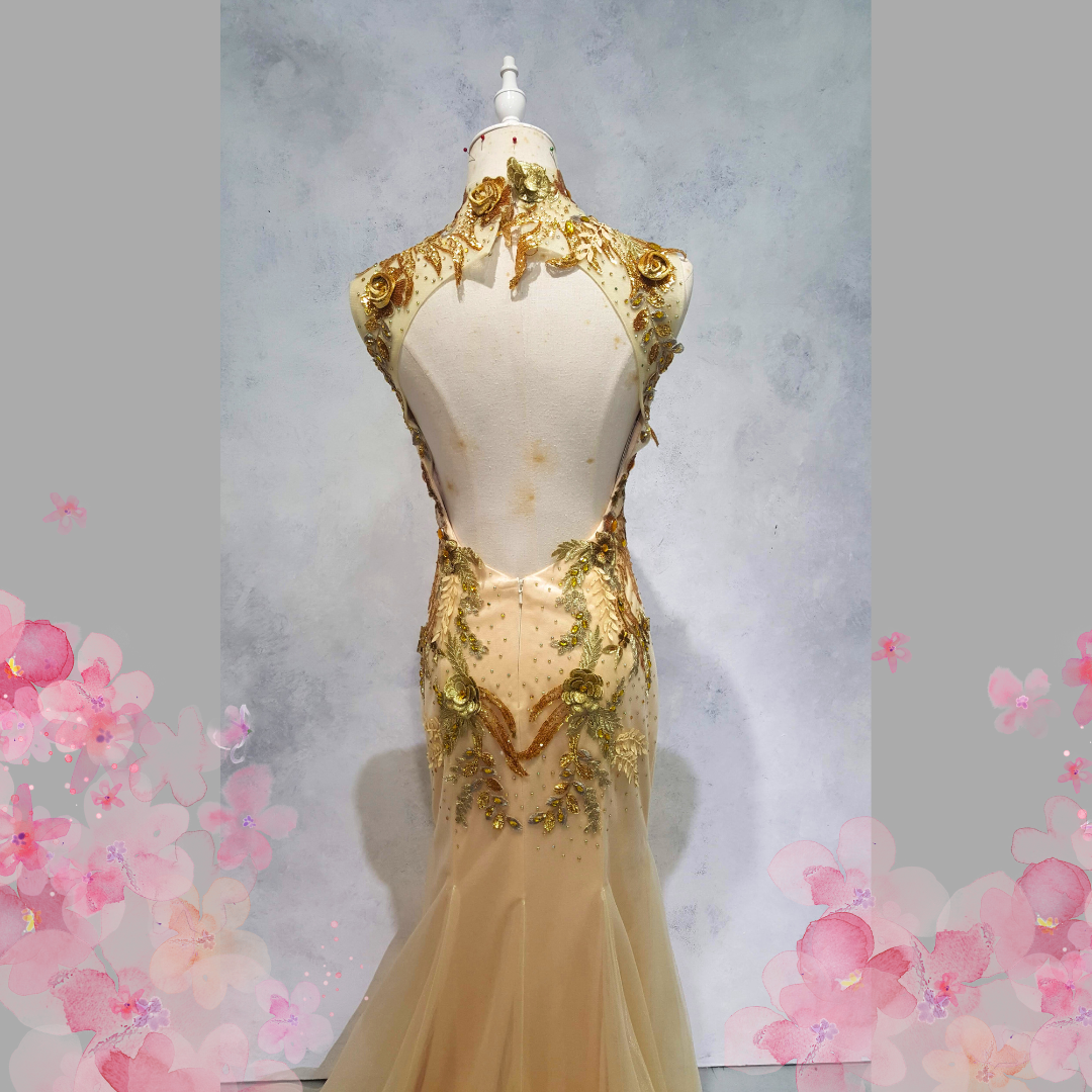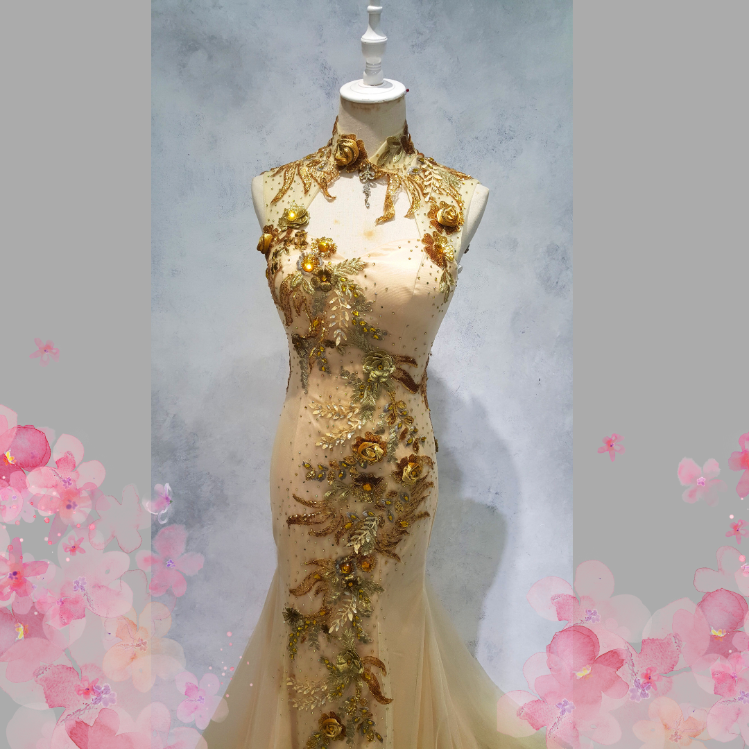 Evening Dress 401Ev09 Cheongsam Golden Roses Oriental Cheong Sam Qi Pao rental Malaysia Kuala Lumpur Petaling Jaya