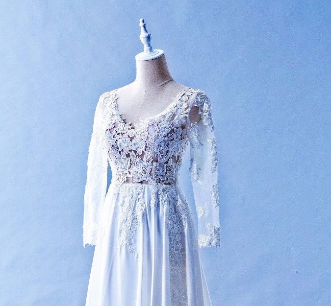 608LL05 LL Lilian Long Sleeves Berta Bride Silk Chiffon Wedding Dress Designer Malaysia