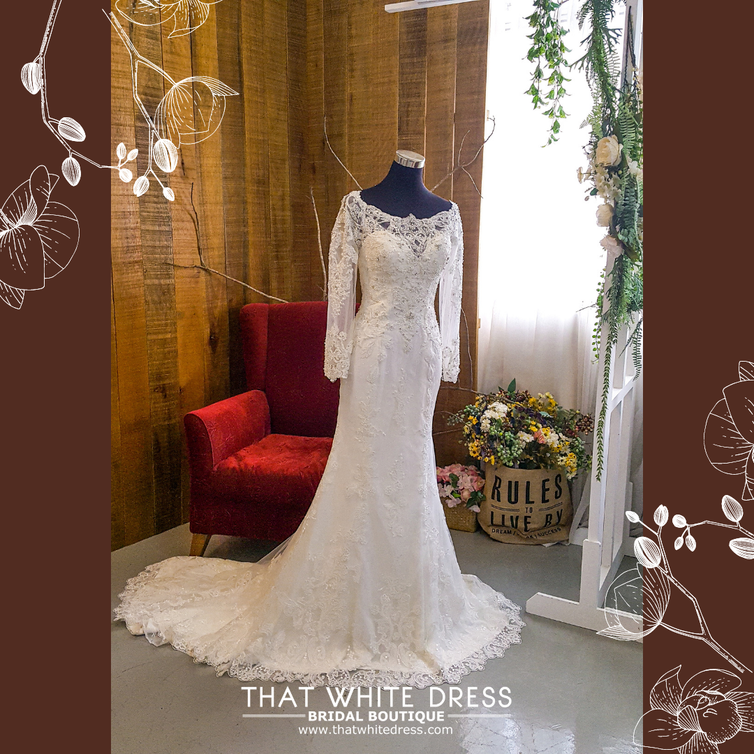 2012BY09W01 Evita Long Sleeves Boat Straight Lace Trumpet Button Back a Gaun Pengantin Muslimah Malaysia sewa Kahwin Nikah
