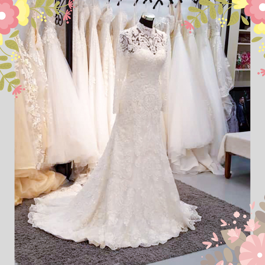 Long Sleeves designs suitable for Muslimah Bride/ Hijab Bride are available.