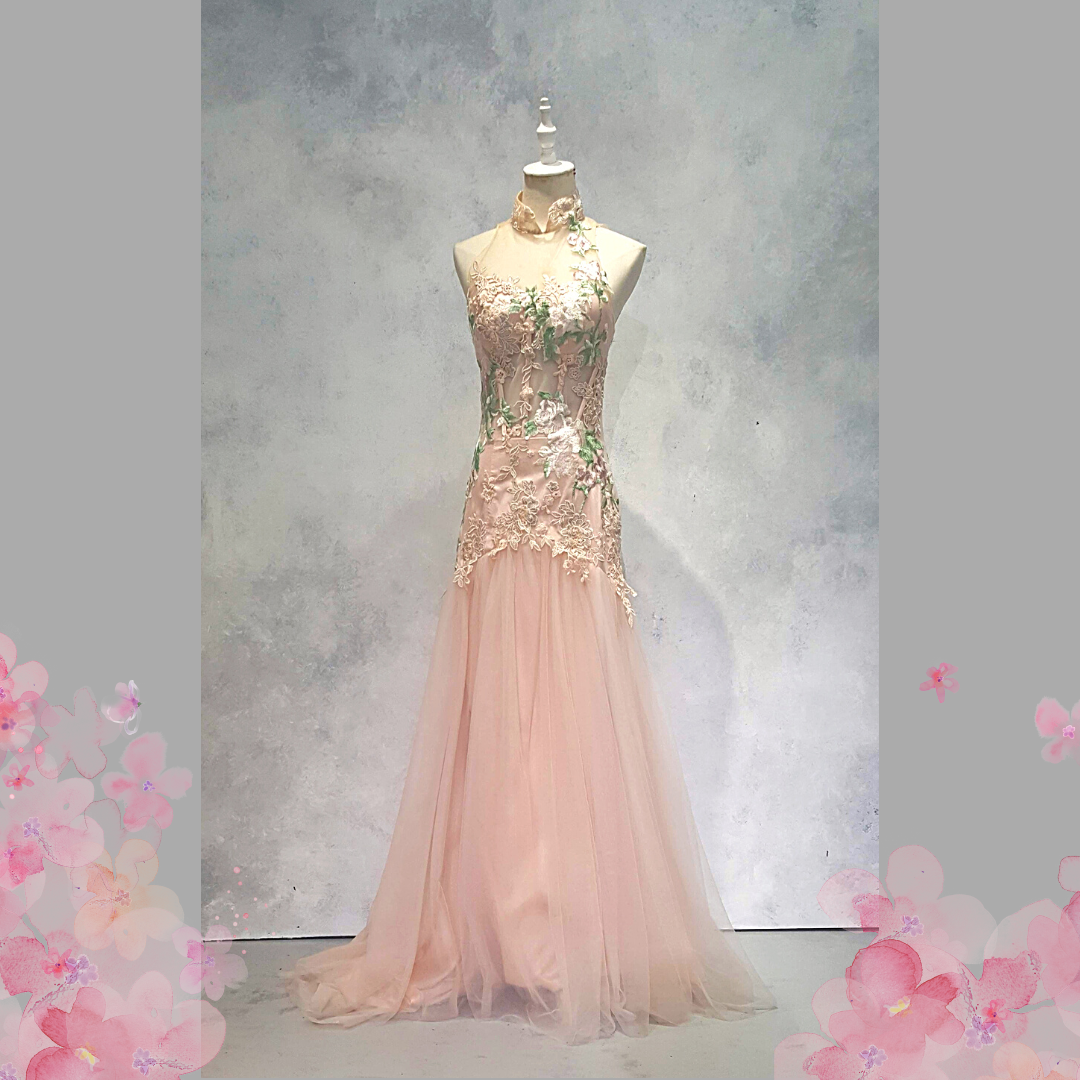 401Ev10 Cheongsam Nude Roses Sheer Back