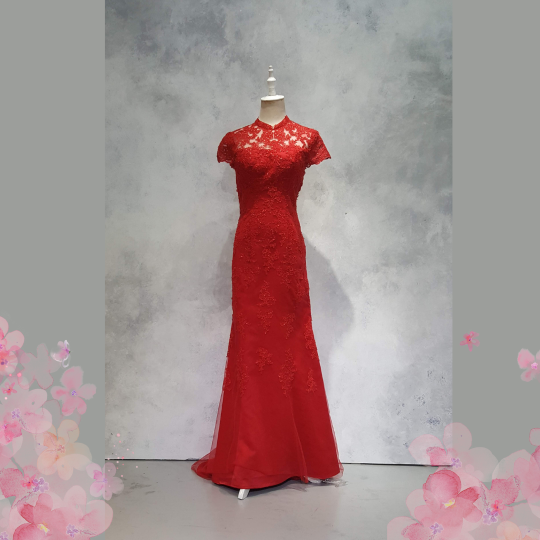 Evening Dress CC610E06 Red Cheongsam Alencon Lace 21 Oriental Cheong Sam Qi Pao rental Malaysia Kuala Lumpur Petaling Jaya