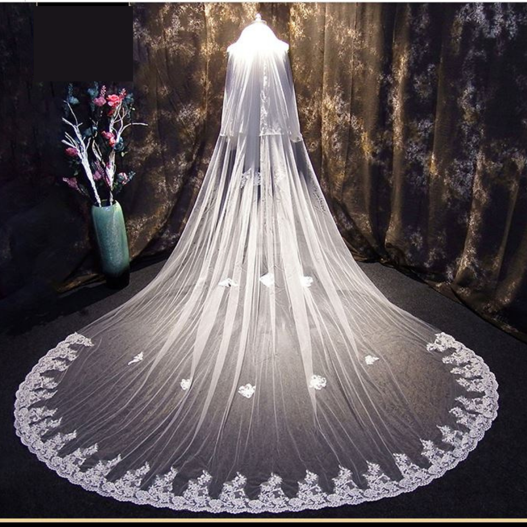 VT021c TWD Premium Bride Wedding Veil French Alencon Lace Cathedral length 4 meter/Veil Tudung Pengantin Nikah Sanding
