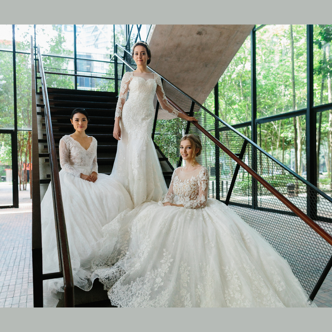 Inspired by classic and timeless wedding dress of all time, we carry a big collection of wedding gowns in store, available for rental.