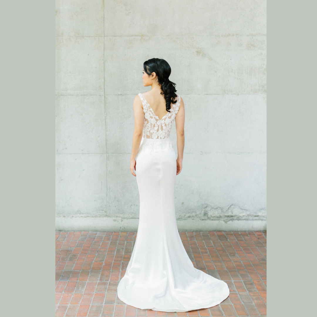 608LL04 LL Soie Low V neck illusion Silk Satin 30 (15) Petite Bride Malaysia, Wedding Ballgown rental Malaysia, Bridal Dress Rental Malay Kuala Lumpur Rental,