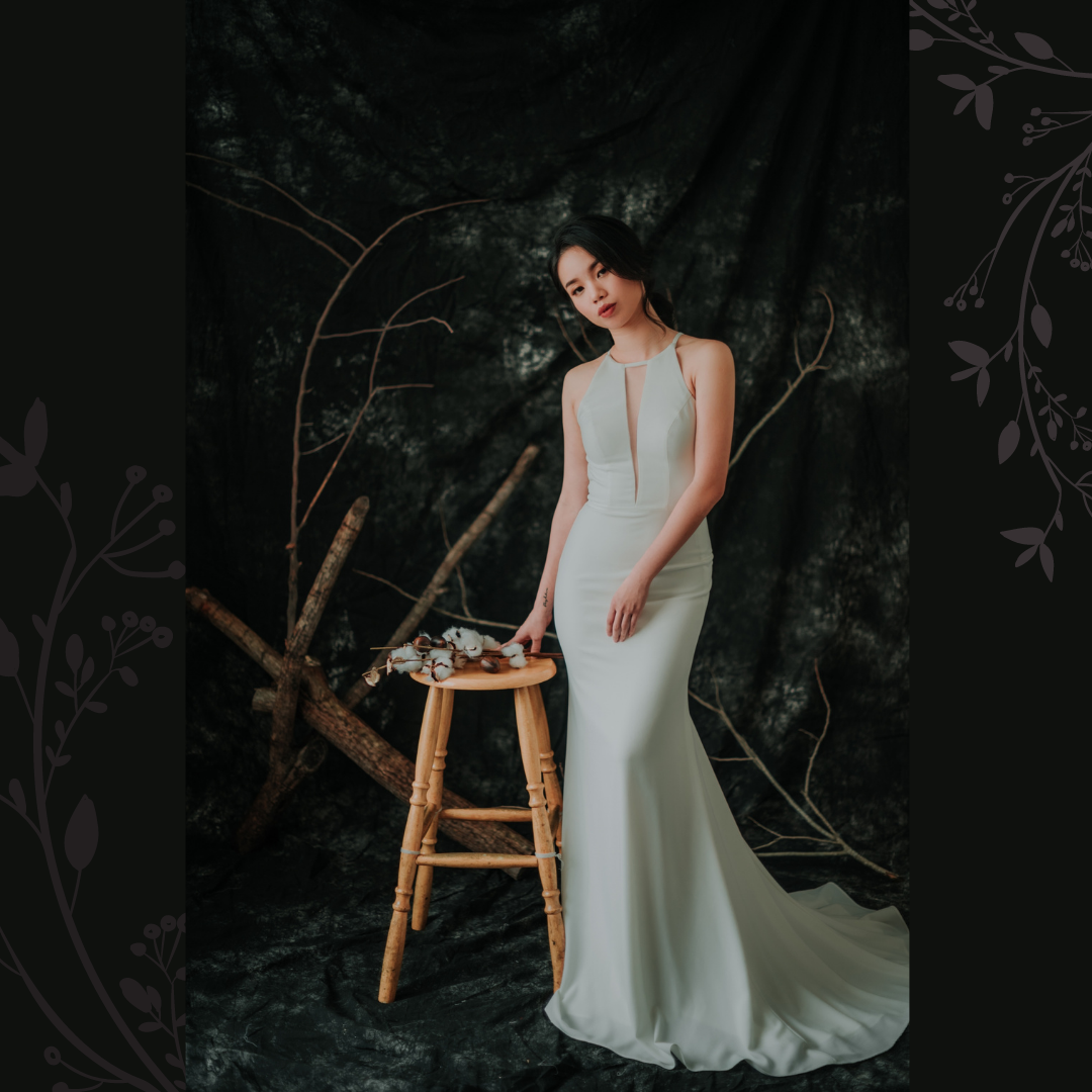 910BY05W01 Carrie Halter Neck Crepe trumpet  V neck 9 ROM wedding dress rental Malaysia, Simple wedding dress malaysia, ROM wedding gown Kuala Lumpur, Garden wedding reception Malaysia,