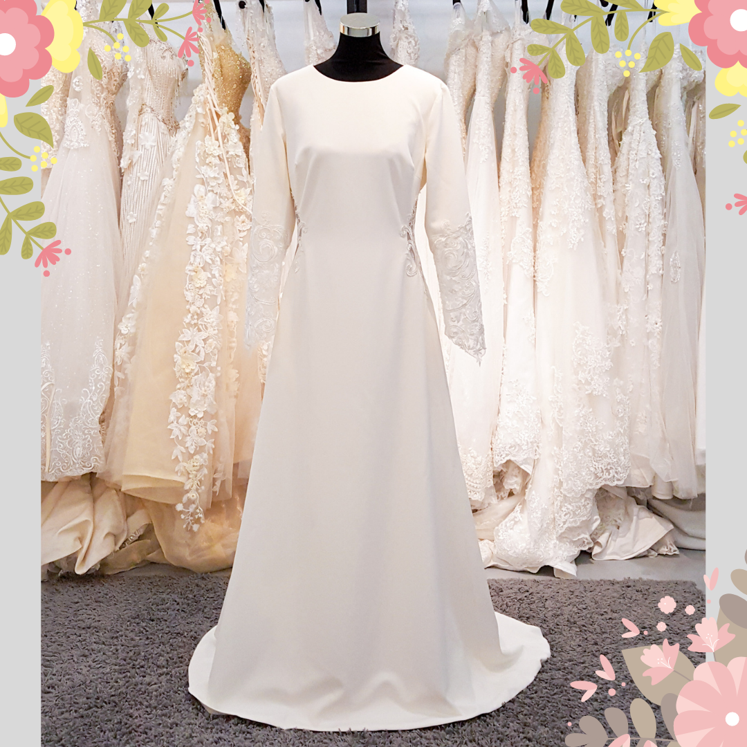 Long Sleeves designs suitable for Muslimah Bride/ Hijab Bride are available.