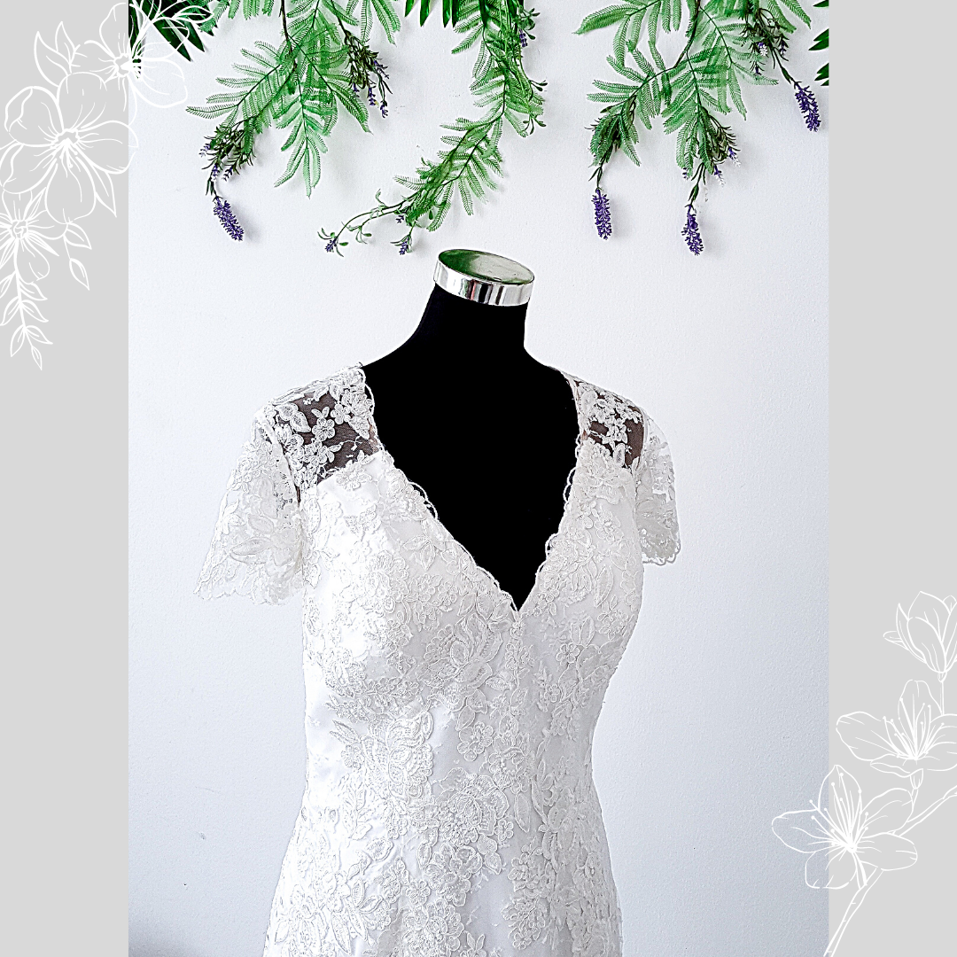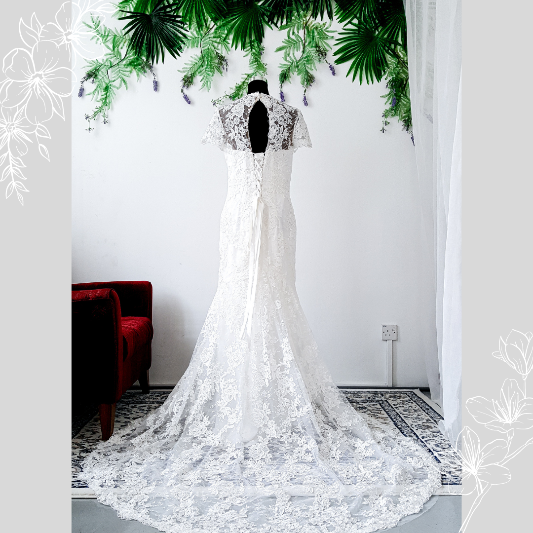 906BY04WL02 Marina Plus Size bride Cap Sleeves Trumpet Floral Alencon wedding dress rental Malaysia