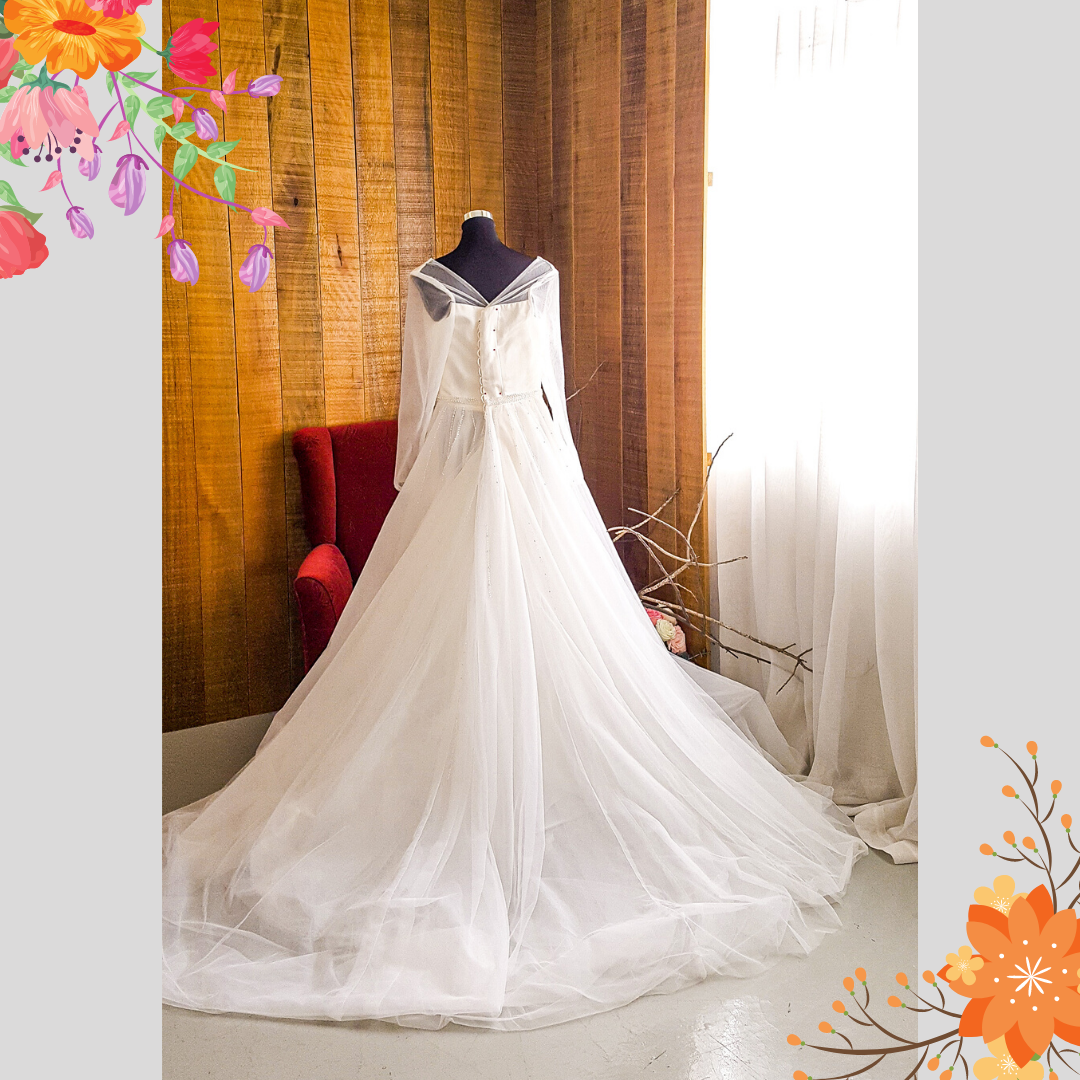 20YS01WL01 Mia Plus LS Satin Strap V neck Tulle A line Wedding Dress