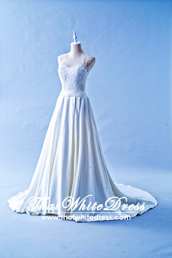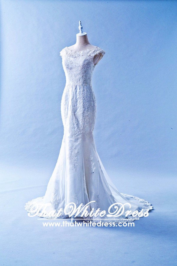1502W13 XJ Illusion Neck Cap Sleeves Lace Train A line