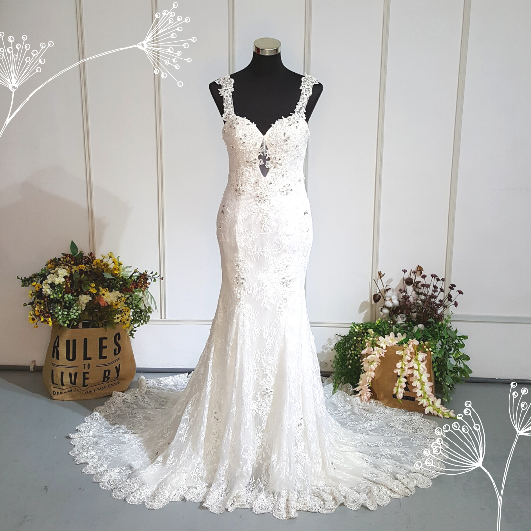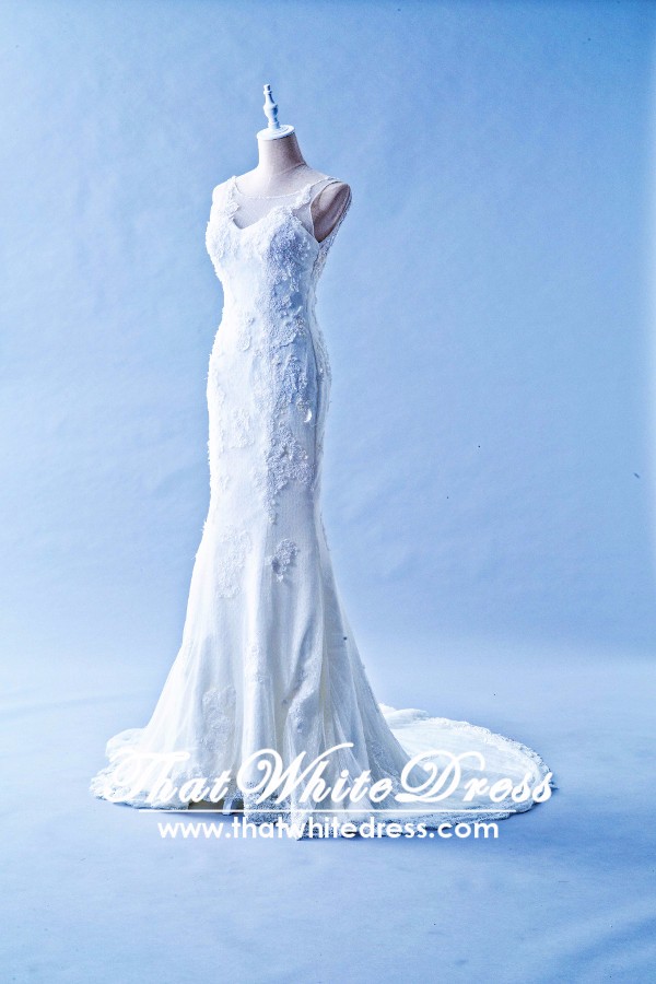 412W21 LL Vintage Low back Pearls V neck Strap Trumpet Mermaid Wedding Dress