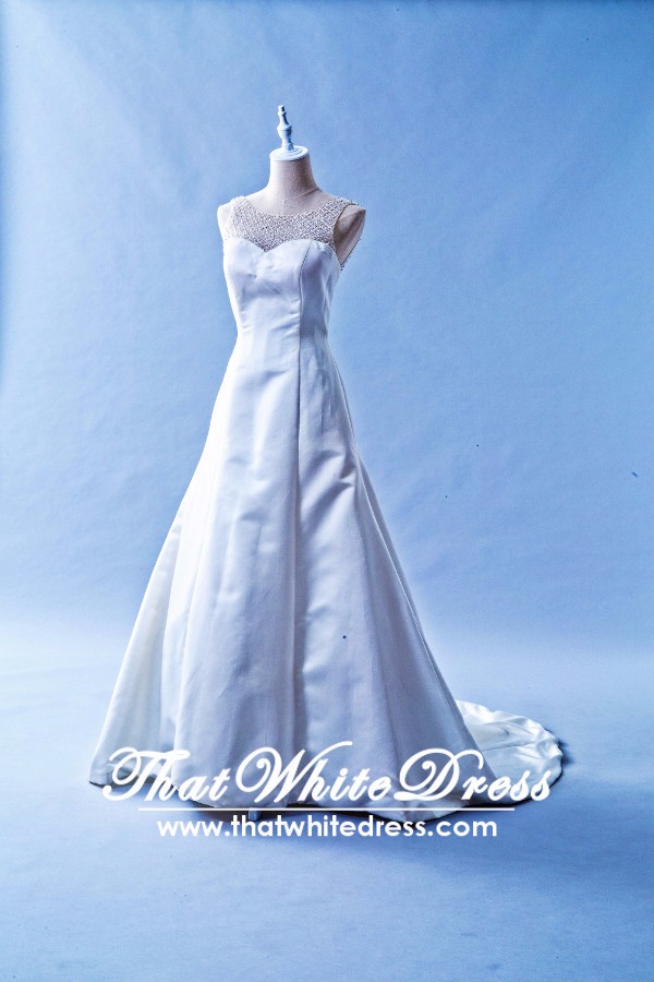504W04 CS Illusion Neck Duchesse Wedding Dress Designer Malaysia