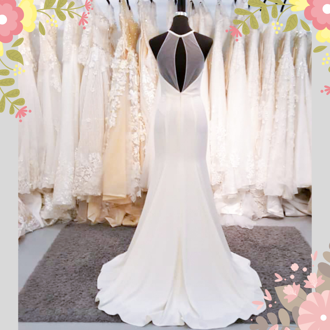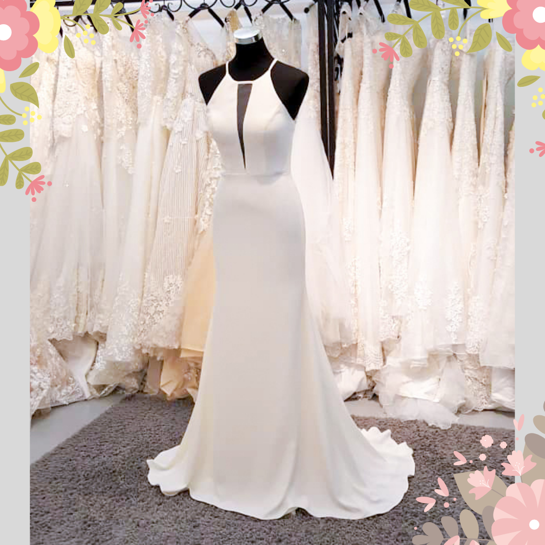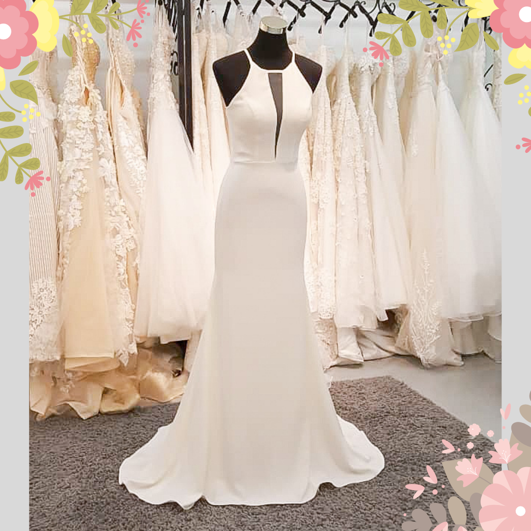 910BY05W01 Carrie Halter Neck Crepe trumpet  V neck b ROM wedding dress rental Malaysia, Simple wedding dress malaysia, ROM wedding gown Kuala Lumpur, Garden wedding reception Malaysia,