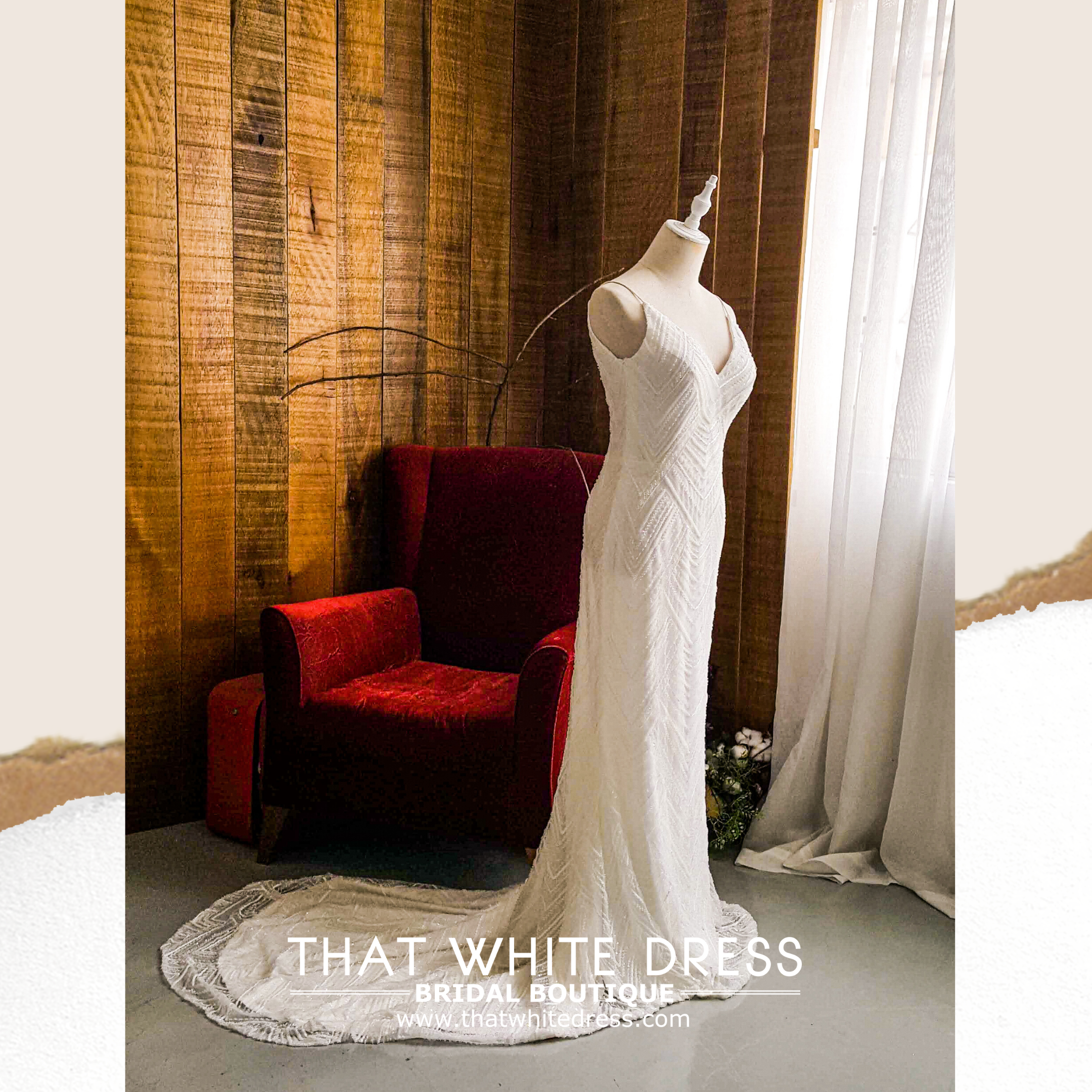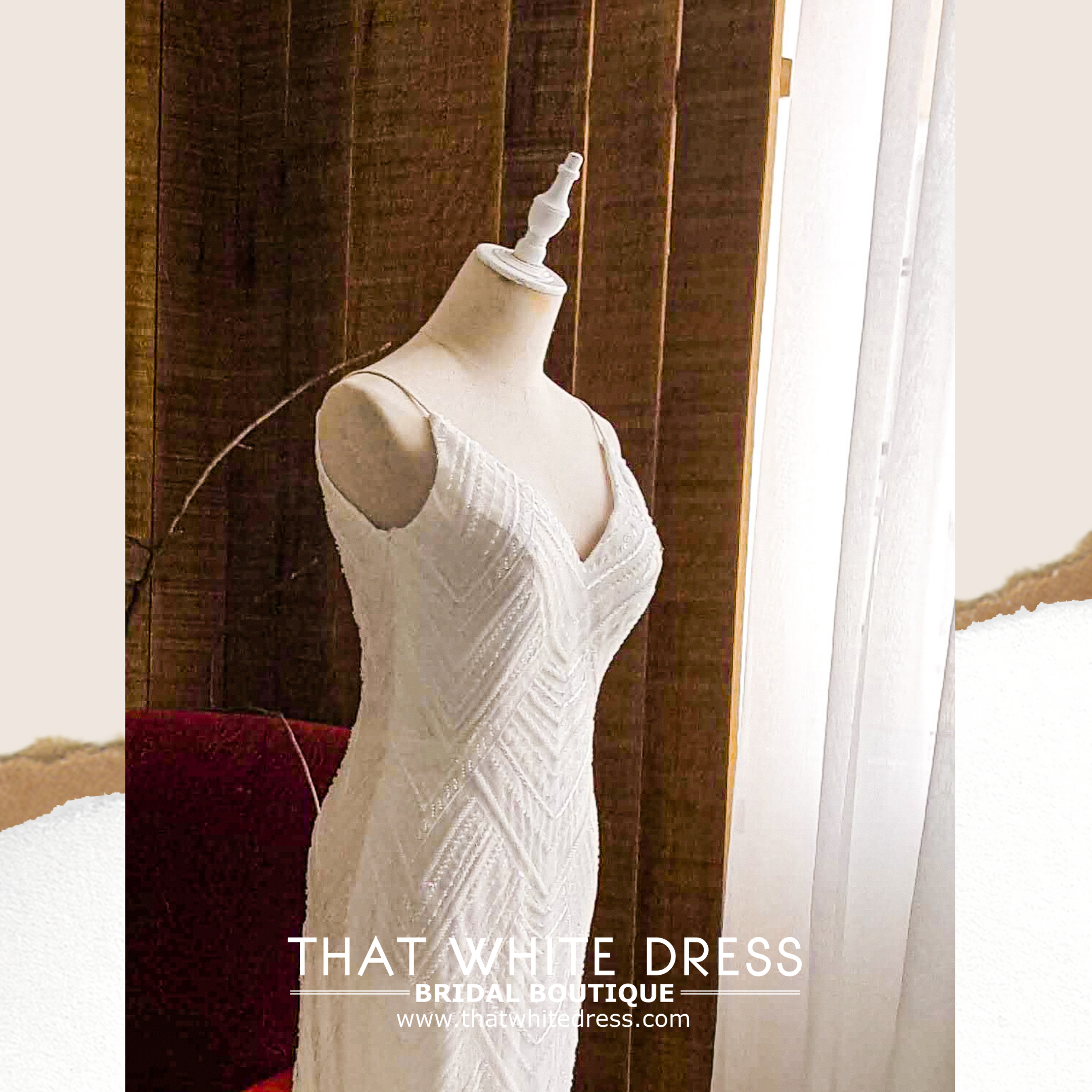 812BY02W02 Laryssa Spag Strap V neck sequin bodice sheath 2-in-1 dress Bride Wedding Dress Designer Premium White Rental Kuala Lumpur