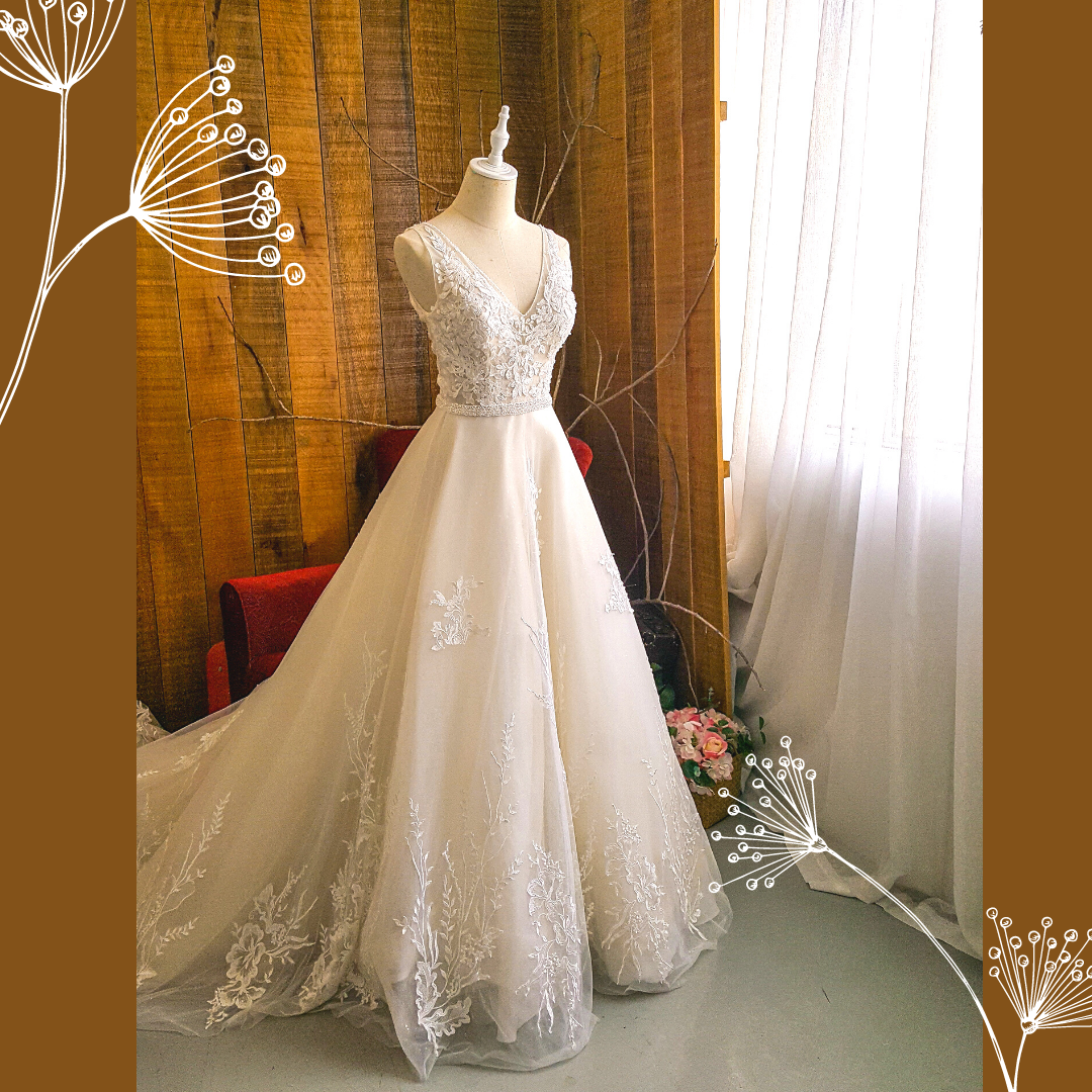 812BY02W05 Aryssa V neck illusion V back button A line a Bride Wedding Gown Premium Designer Malaysia rental