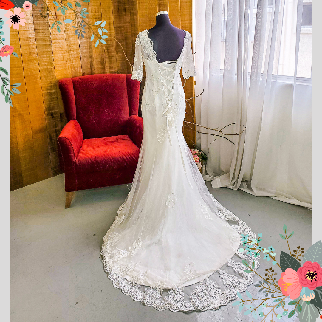 405W002 Mermaid Trumpet Quarter Long Lace Sleeves wedding dress