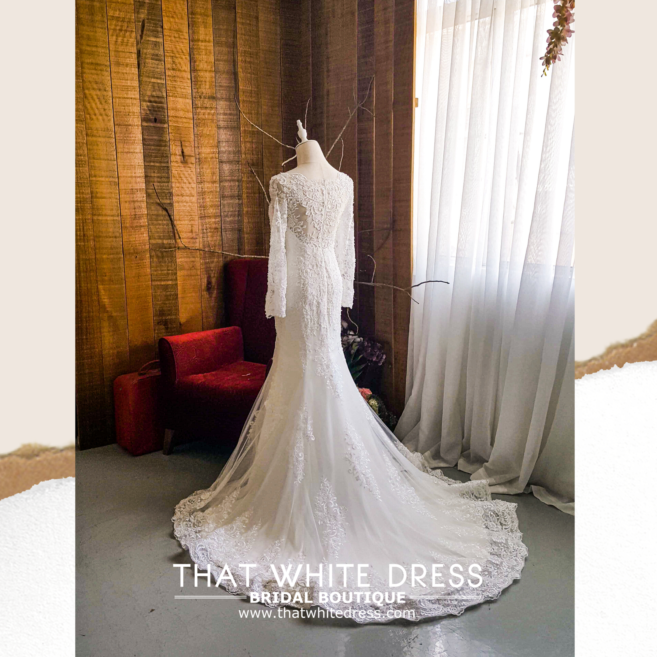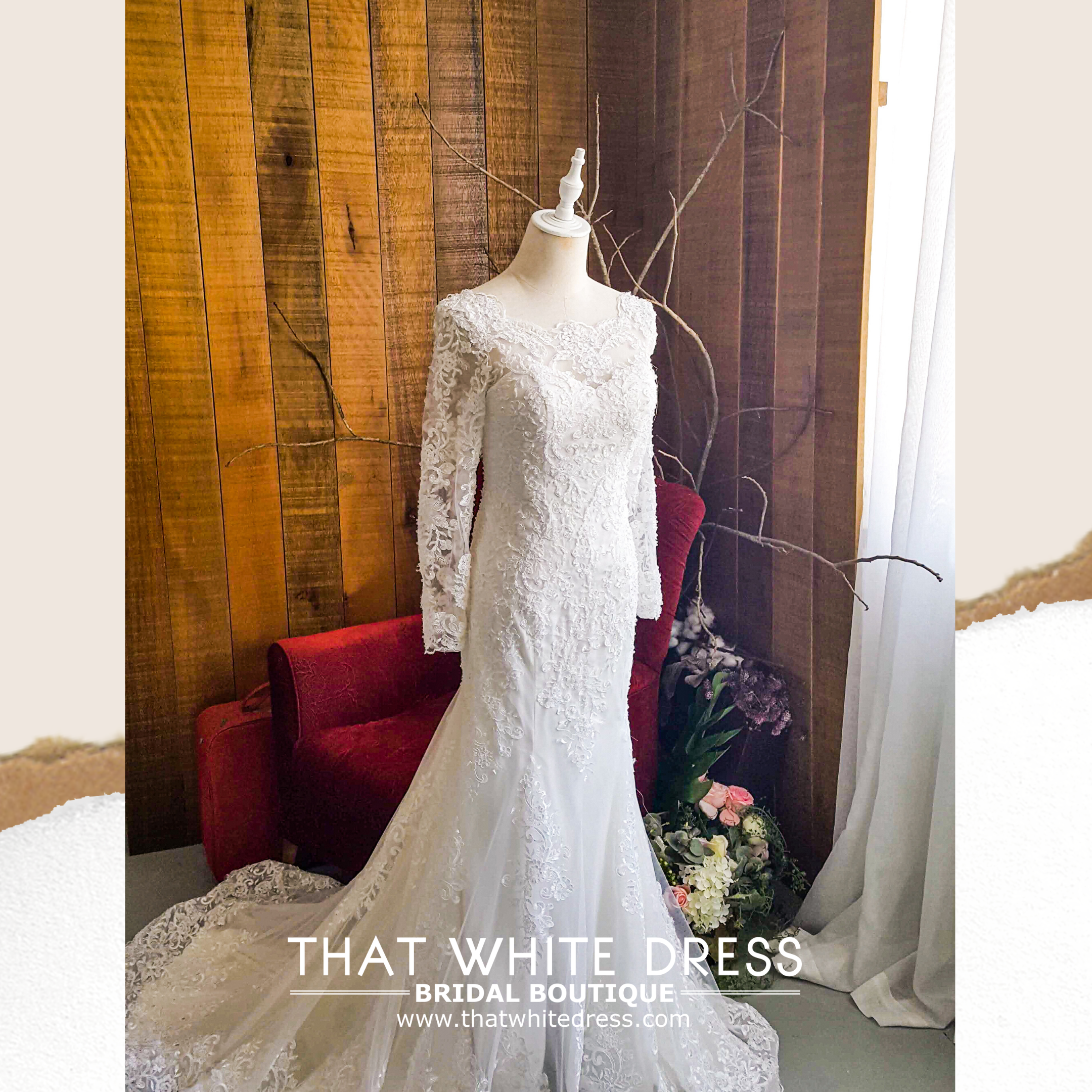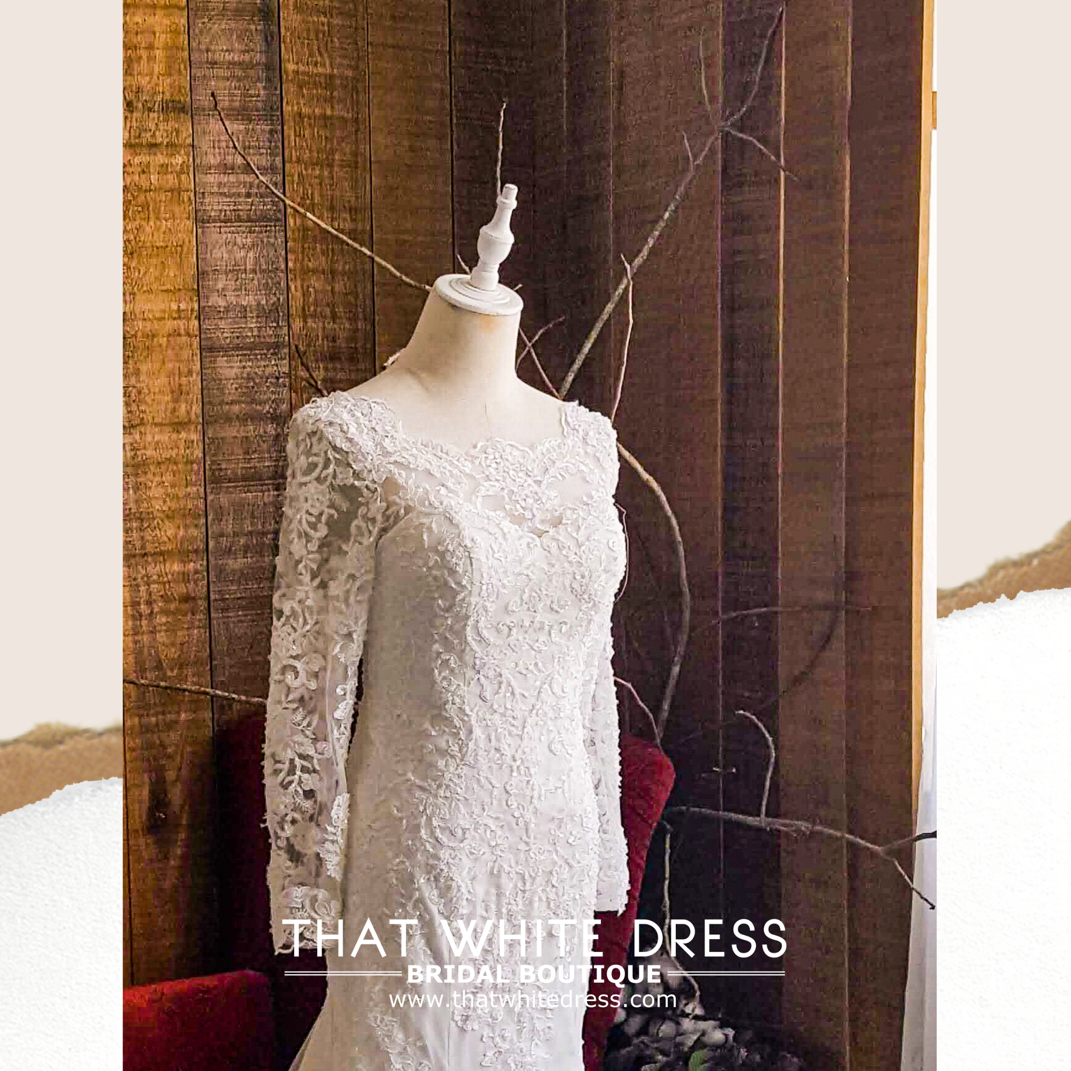 910LLW06 Carla Long sleeves boat neck trumpet Alencon a Bride Wedding Gown Premium Designer Malaysia rental