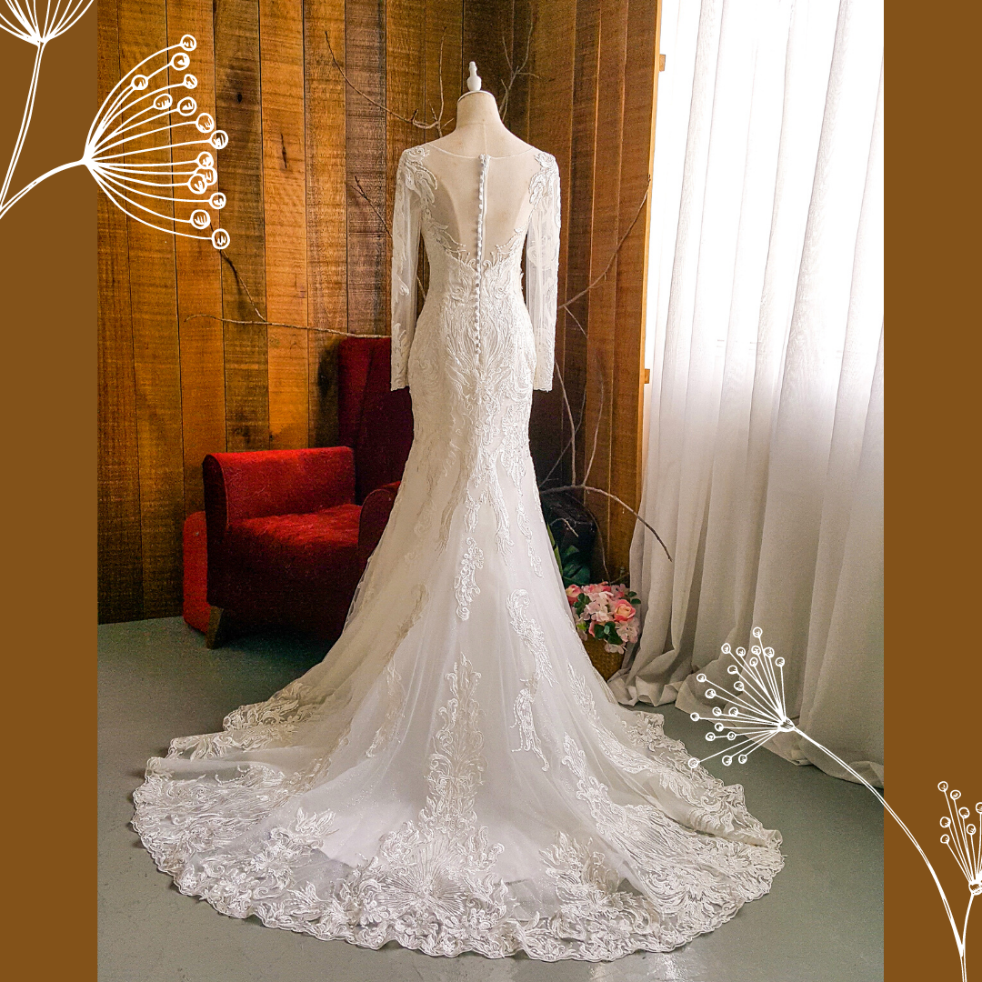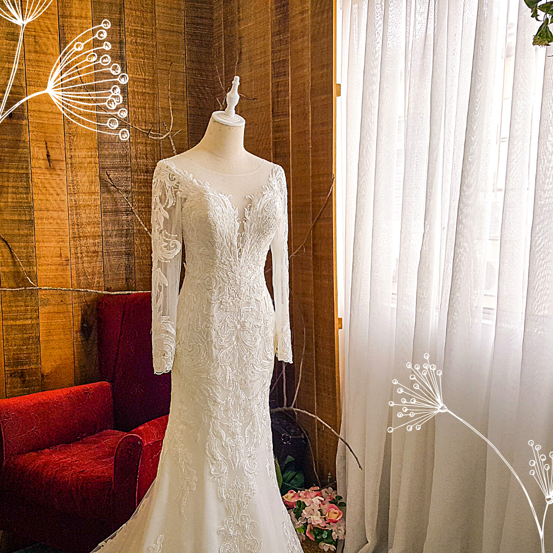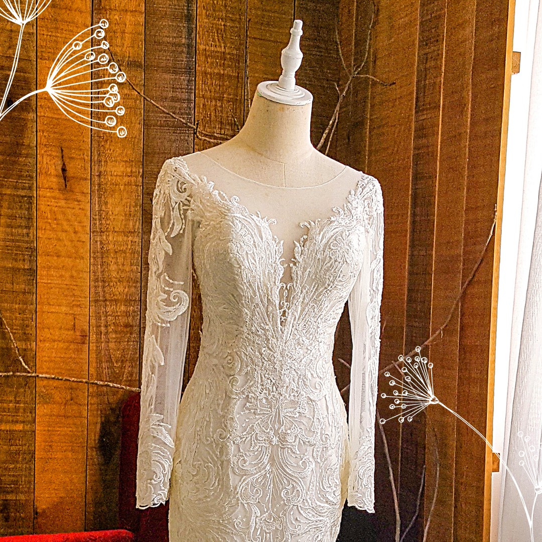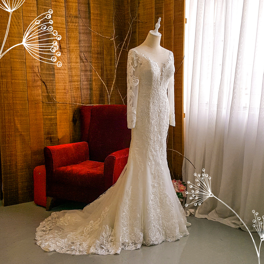 203BYW04 Valeena Long Sleeves Baroque Trumpet zip illusion off shoulder f button back Gaun Pengantin Muslimah Malaysia sewa Kahwin Nikah