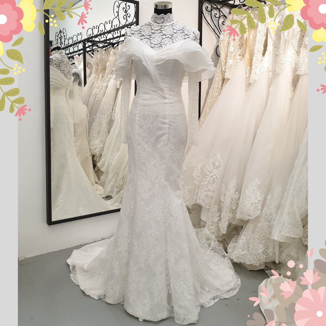 Long Sleeves designs suitable for Muslimah Bride/ Hijab Bride are available.
