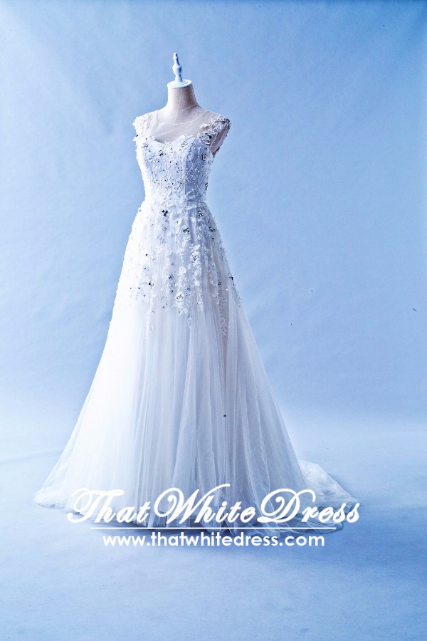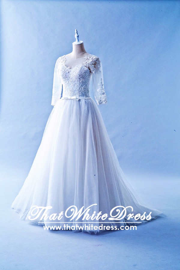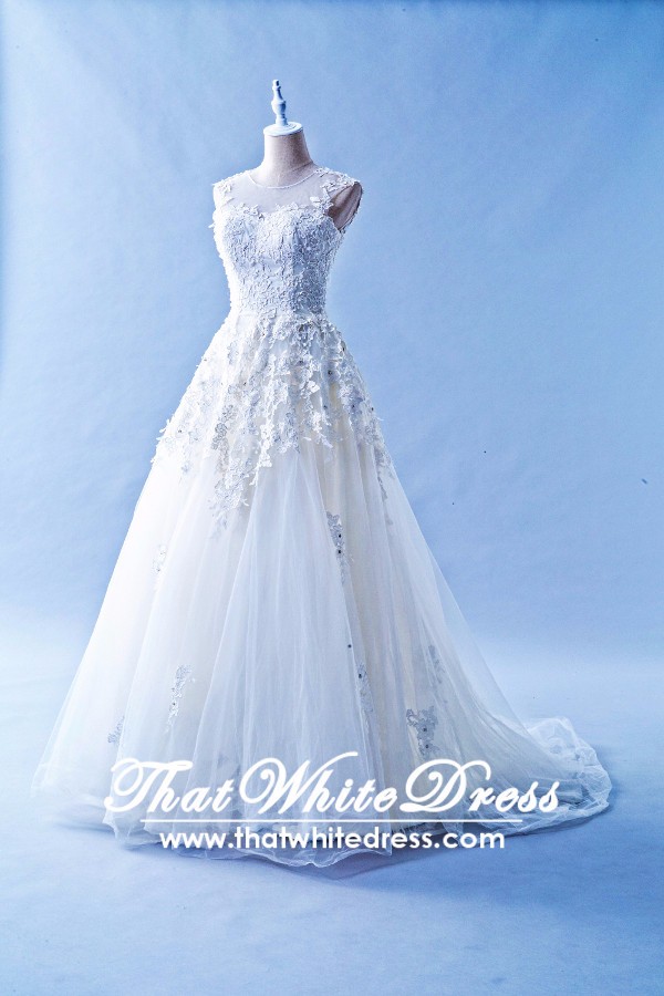 508WL02 TY WL Boat Neck Illusion Neckline A line Lace Top Malaysia Wedding Dress Designer Rental