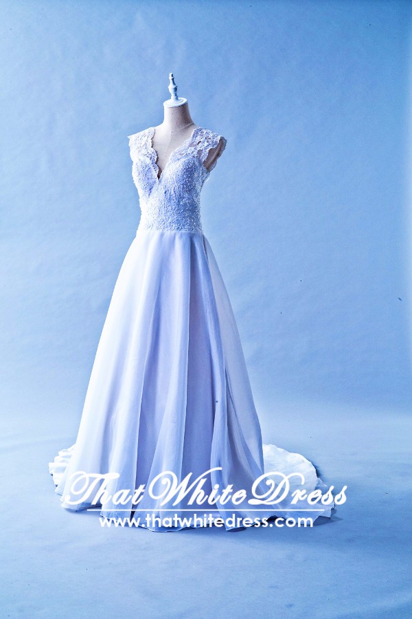 305W002 Aline Illusion Lace Cap Malaysia Wedding Dress Designer