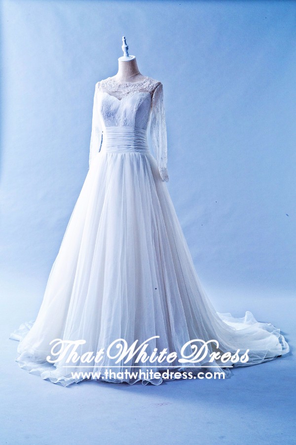 408W02 LL illusioned neckline Princess Top Malaysia Wedding Dress Designer Rental