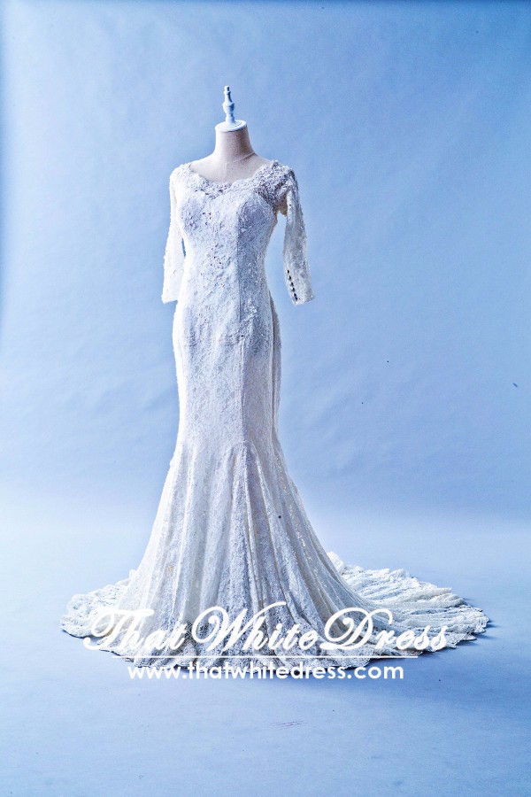 401W022 MR A Line Lace Long Waist Crystal Bust Wedding Dress Rental Kuala Lumpur